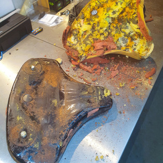 Restaureren van oude zadels, het kan! Compleet demonteren van de zadels, stralen, herspuiten (zwart of zilver) en herstofferen / hermonteren, als nieuw!